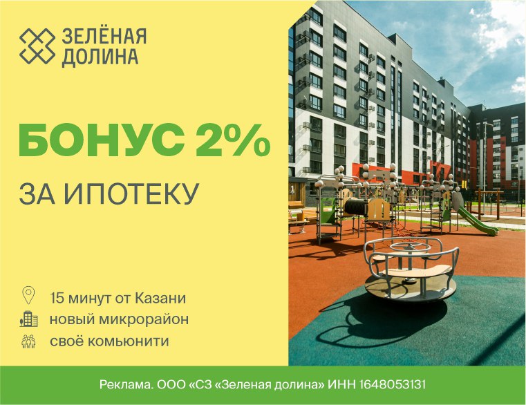 Мы запустили специальное предложение для клиентов микрорайона «Зелёная долина»*, которые выходят на сделку по ипотеке. Вы получаете приятный бонус - скидку 2%** от стоимости квартиры.