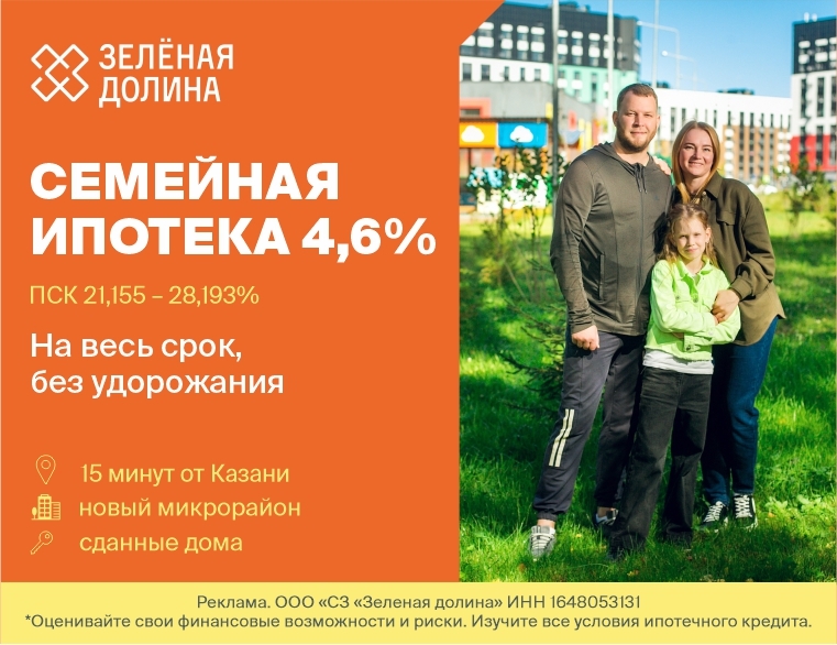 Мы запустили специальную программу семейной ипотеки на покупку квартир в микрорайоне «Зелёная долина»*. Заниженная ставка 4,6%** на весь срок (ПСК 21,155 – 28,193%). Оценивайте свои финансовые возможности и риски. Изучите все условия кредита (займа) на сайте vtb.ru.